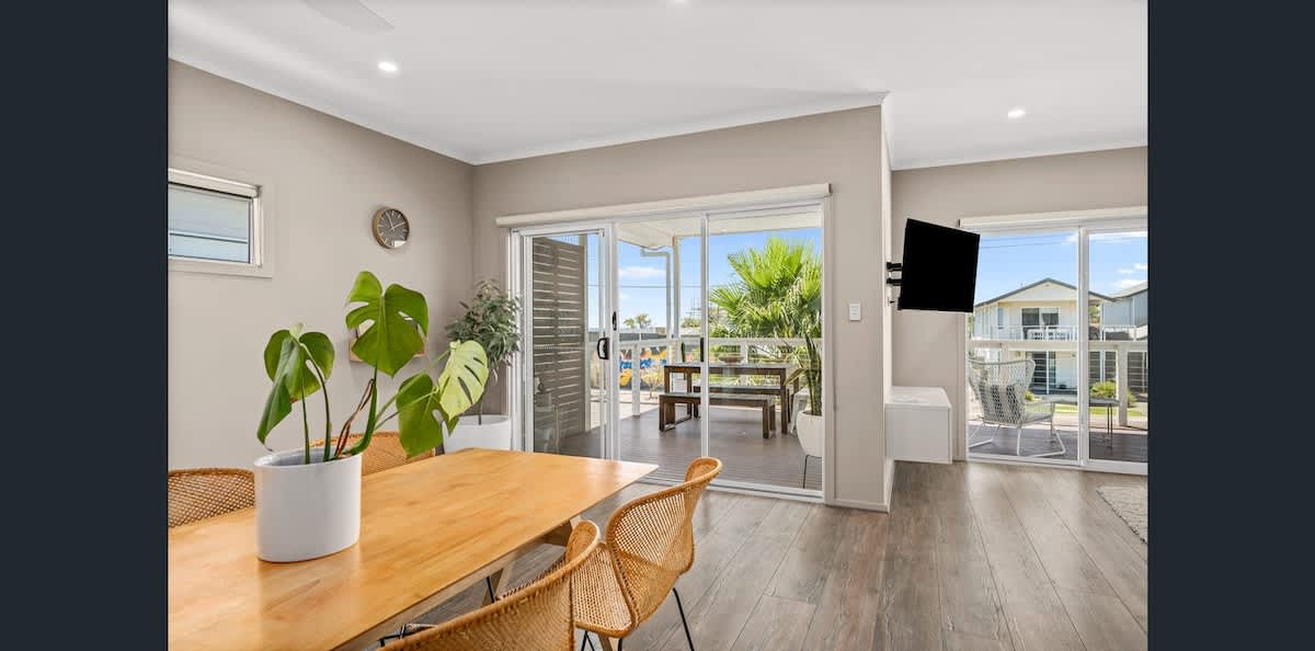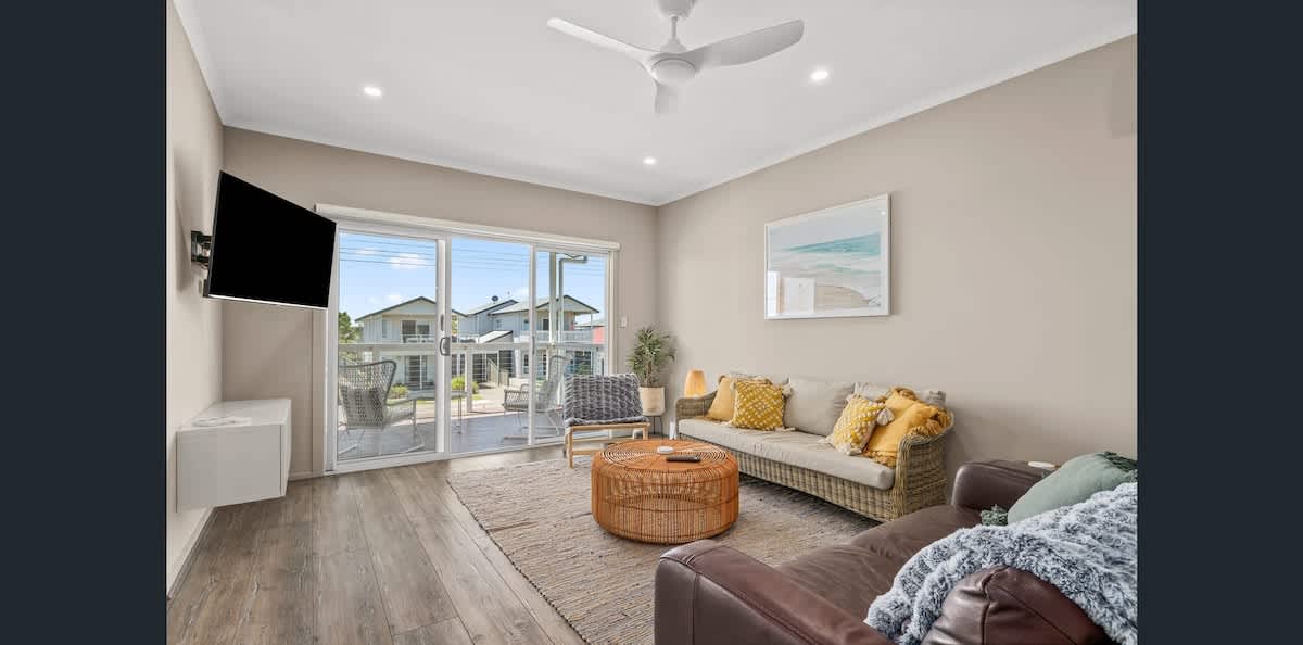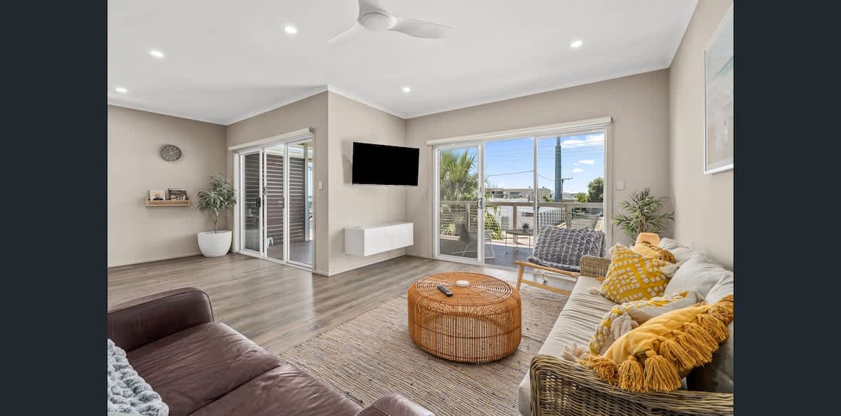Welcome to your contemporary coastal escape—designed for comfort, relaxation, and beachside living. As you step inside the ground floor, you’ll find a second lounge room—ideal for kids or a quiet retreat—with a TV and relaxed seating. This level also houses three spacious bedrooms, a full bathroom with shower and bathtub, and a laundry equipped with a washing machine, dryer, iron, and ironing board. Upstairs, natural light floods the open-plan main living area, where the well-equipped kitchen (including quality appliances, fridge, stove, oven, and more) overlooks the dining and lounge zones. The space flows seamlessly onto a large entertainer’s balcony with ocean views and outdoor dining—perfect for sunset dinners and lazy mornings. Also upstairs is the master suite, a generous room featuring a queen bed, private ensuite, and calming natural light. A guest powder room is also conveniently located on this level. With a modern coastal design and flexible layout, this home makes beachside living effortless.