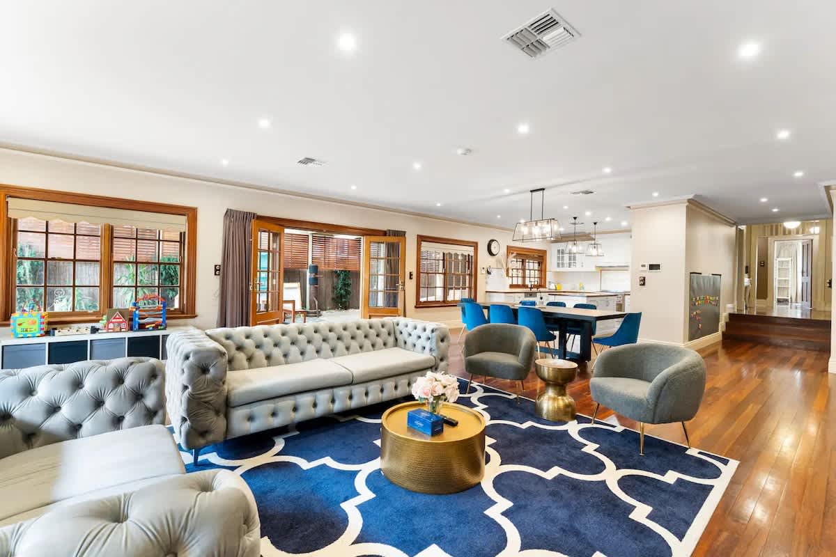 After your booking is confirmed you will be provided a boarding pass link from Airbnb’s trusted partner, ENSO Connect. Please note that a $550 security deposit (authorised and held by your card provider, not held by us) is required as part of the booking process. Alternatively, if you prefer, we offer a $55 damage waiver. This beautifully furnished, home in Felixstow offers both luxury and comfort. Upon entering, you are greeted by a charming front sitting room, an ideal space to relax and unwind. This leads into the spacious open-plan living and dining area, which is bathed in natural light. The living area features two large, comfortable sofas positioned around a wall-mounted TV, perfect for cozy family movie nights or casual afternoons. The space opens directly to the dining area, where a stylish 8-seater dining table awaits, ideal for family meals or entertaining guests. The adjacent kitchen is large, modern, and fully equipped for all your culinary needs. It includes a fridge/freezer, oven, stovetop, dishwasher, and a Nespresso coffee machine with pods provided. With ample counter space and storage, including a well-organized pantry, this kitchen is designed to cater to anything from a quick snack to a gourmet dinner. The master bedroom is a tranquil retreat with a king-sized bed, walk-in wardrobe, and a luxurious ensuite bathroom. The ensuite features a large spa bath, separate shower, and toilet, making it a perfect place to relax and rejuvenate. Bedrooms 2 and 3 each feature queen-sized beds and wardrobes, offering a comfortable and peaceful space for family or friends. Bedroom 4 is ideal for children or infants, furnished with a bunk bed with a double on the bottom and a single on the top, and a cot, ensuring your little ones have a restful night's sleep. The home also boasts a beautiful outdoor space. The large backyard is fully fenced for privacy and safety, featuring a swimming pool where you can cool off during hot summer days. This backyard is ideal for both relaxing poolside and enjoying outdoor meals. For your convenience, the home includes a laundry room equipped with a washing machine, making longer stays comfortable.